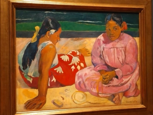 一方は民俗服、他方は西洋風の服のタヒチ女性。ゴーギャンは西洋化に反発した。
