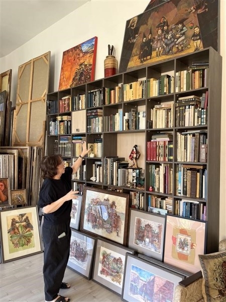 リディアさんの夫君も画家。ドイツや、日本、中国など多くの国を夫妻で訪問して活動してきました。コロナ禍まで、彼女は国際女性画展「世界の花」のメンバーとして、日本、ドイツ、サンクトペテルブルク、豪州での展示会に参加していたそうです。お話上手のリディアさん。伊豆で日本家屋に泊まった朝、障子を開いたら美しい庭が目の前に広がっていた時の感動を生き生きと語ってくれました。日本文学も大好きで、愛読書は三島由紀夫の「豊饒の海」だそうです。