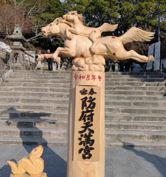 チェーンソーで彫られた干支の馬:防府天満宮にて