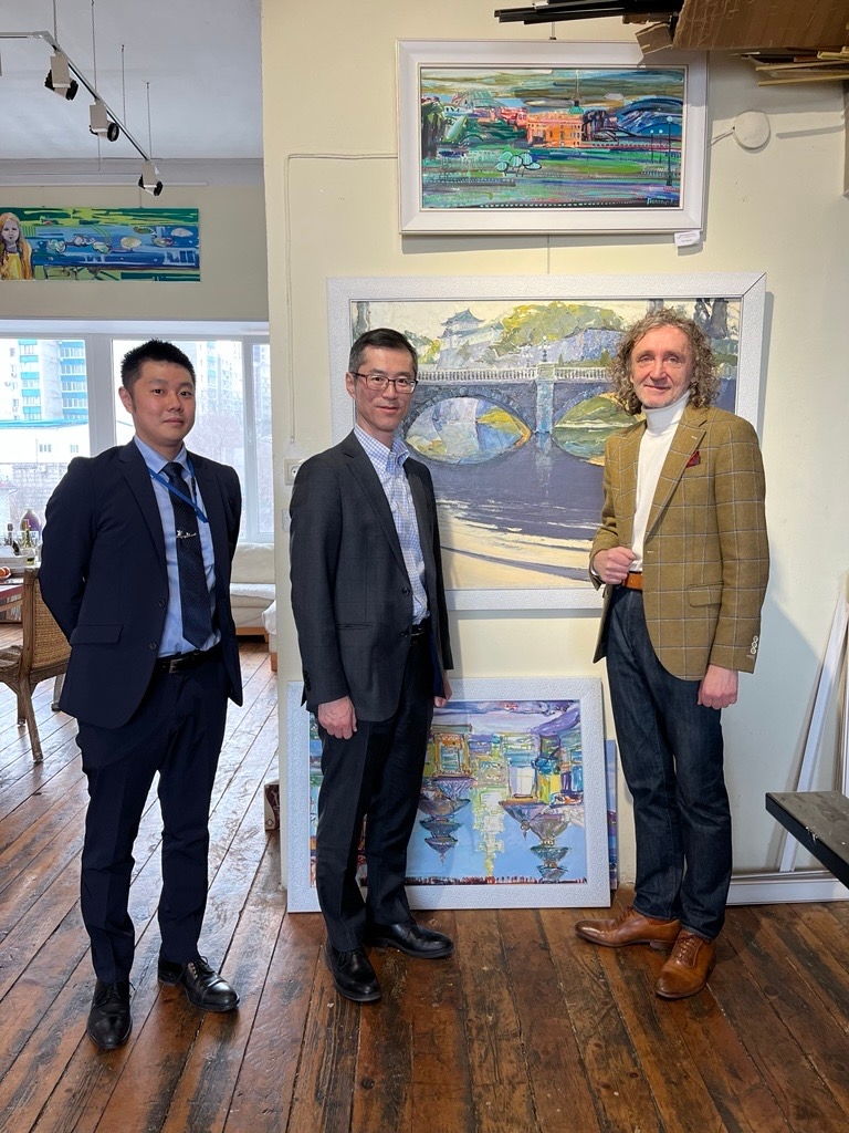 По совету читателя моих дневников «Письма из Владивостока» я посетил мастерскую художника Игоря Обухова. Он создает картины, наполненные потрясающей гармонией, в которых основной мотив составляют его впечатления от путешествий по Японии, Китаю и странам Юго-Восточной Азии, переплетаясь временами с образами моря и маяков Владивостока. Игорь Обухов посетил Японию вскоре после случившегося в 2011 году Великого восточно-японского землетрясения и провел в Йокогама 21 день. По словам художника, на него произвело глубокое впечатление то, как после землетрясения японский народ продолжал жить, соблюдая заведенный порядок. По приглашению знакомого он также посетил г. Камакура и о. Эносима и был потрясен тем, что в непосредственной близости от большого города сохранилось так много исторических зданий и старинных улиц. На картине И. Обухова, изображающей на вертикальном холсте Великого Будду в Камакура, внимание зрителя захватывает прямая дорога, ведущая к статуе. После возвращения из Японии художнику потребовалось некоторое время, чтобы решить, как воплотить эти впечатления в своих работах. В итоге картины родились от вдохновения, навеянного гравюрами «укиё-э» руки мастеров Утагава Хиросигэ и Кацусика Хокусай. Поэтому у Игоря Обухова есть много работ и с горой Фудзи на заднем плане.