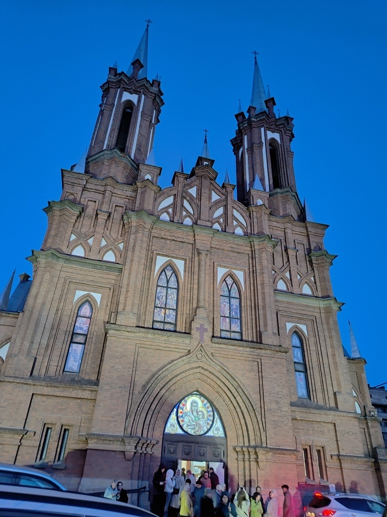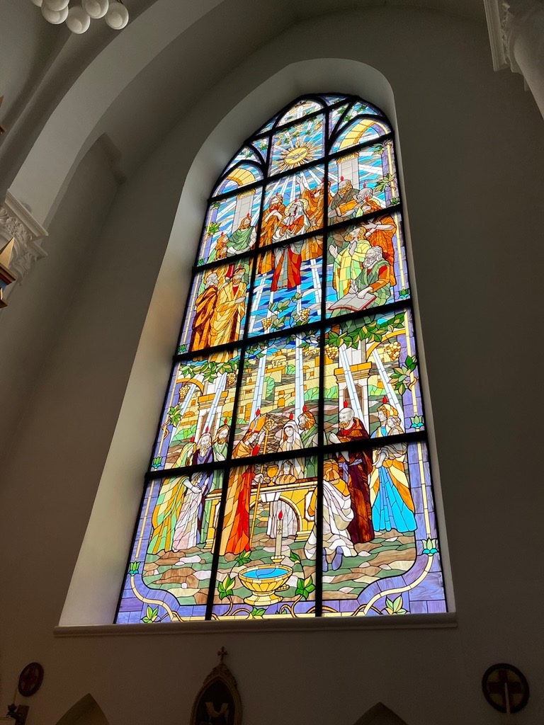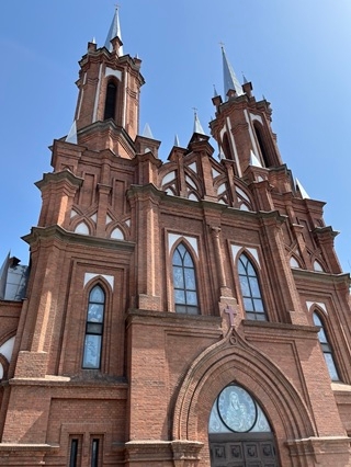 На одной из сопок, возвышающихся над Золотым Рогом, стоит костёл прихода Пресвятой Богородицы, постройка которого началась в 1908 и завершилась к 1921 году. Внутри изысканного здания церкви в неоготическом стиле, выложенного красным кирпичом, льющийся из витражей свет и духовой орган создают удивительную умиротворяющую атмосферу. Движимый воспоминаниями из детства, когда каждое воскресенье я посещал мессу, я решил пообщаться с настоятелем Мироном Эффингом.