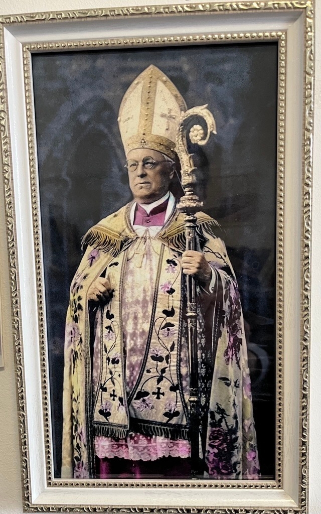 В комнате, где мы общались с отцом Мироном, на стене висит фотография епископа Кароля Сливовского. Отец Кароль прибыл во Владивосток в 1912 году, однако с закрытием прихода после Революции 1917 года он был выселен в пригород, на Седанку, и посажен под домашний арест, после чего скончался в 1933 году в крайне подавленном состоянии. Место, где когда-то стояло надгробие, находится у опор автомобильного моста через Амурский залив. По словам отца Мирона, в деревянном доме, где содержался под стражей епископ Сливовский, до этого проживал японский офицер, и если бы удалось найти фотографии того времени, то он хотел бы реконструировать это здание.